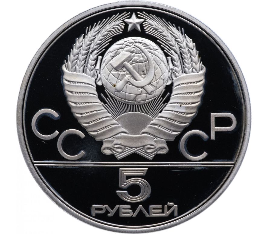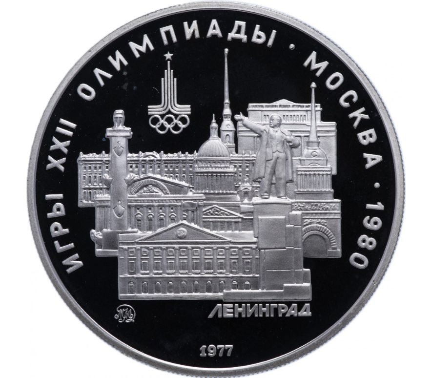 Серебряная монета 5 рублей 1977 «Олимпиада 80 — Ленинград» ММД