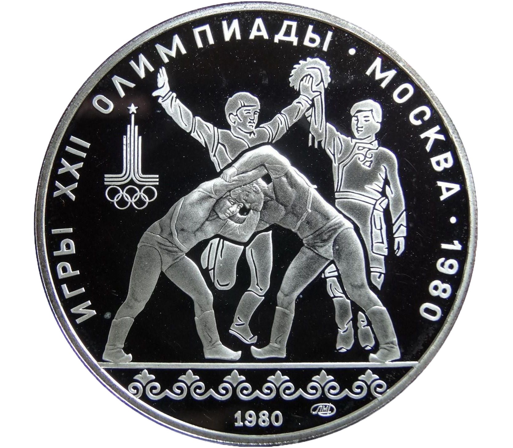 Танец орла (хуреш) — национальный тувинский спорт. Хуреш является не только видом спорта, но и своего рода танцем, национальной традицией. Предлагаем приобрести монету 1980-го года, посвященную танцу орла.