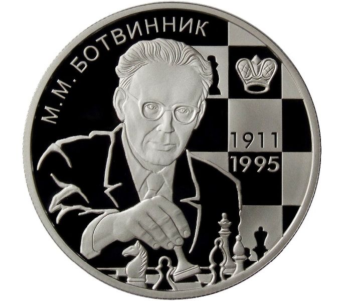 Серебряная монета 2 рубля 2011 «Шахматист М.М. Ботвинник - 100-летие со дня рождения»