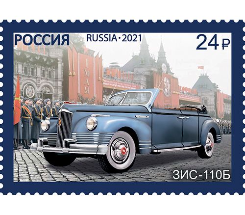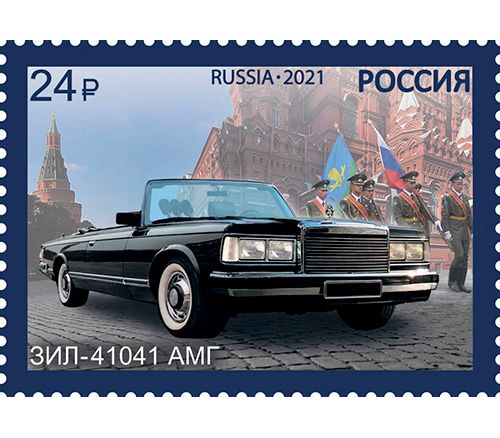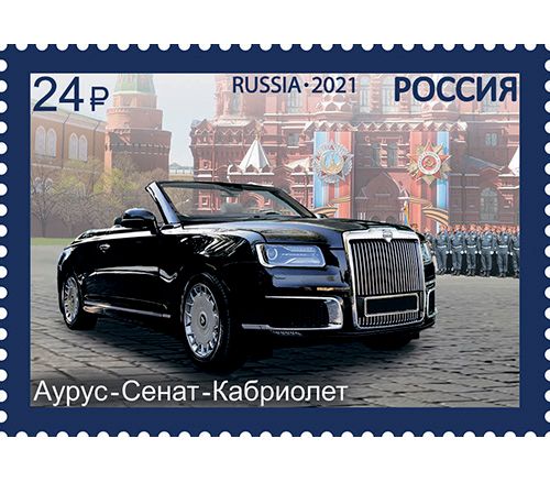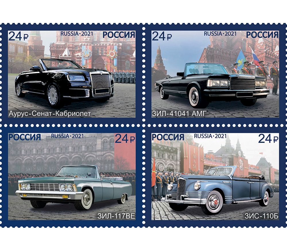 Серия из четырех почтовых марок 2021 года. Выпуск посвящен российским парадным автомобилям. На марках изображены модели: ЗИС-110Б, ЗИЛ-41041 АМГ, ЗИЛ-117ВЕ и Аурус-Сенат-Кабриолет.