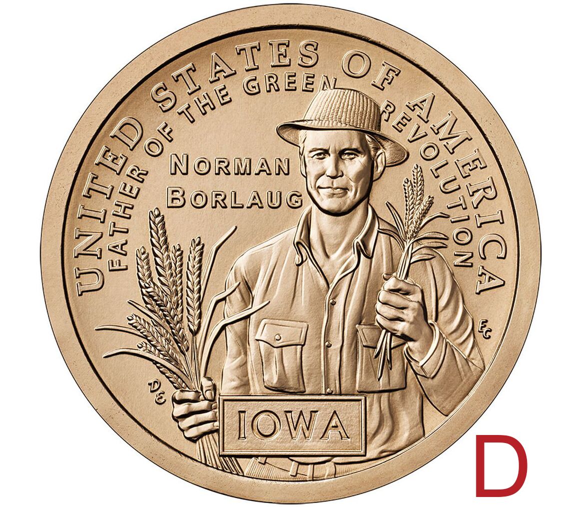 Монета 1 доллар 2026 «Норман Борлоуг. Айова» D (Американские инновации)