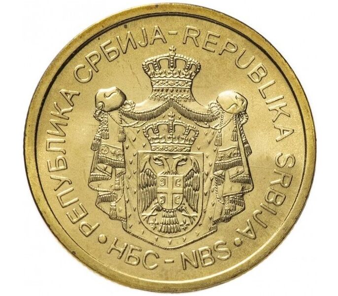 Монета регулярного чекана 2 динара 2013 года, выпущенная в Сербии. Монета изготовлена из стали с медно-латунным покрытием. На оборотной стороне монеты отчеканено рельефное изображение Монастыря Грачаница.
