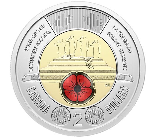 Автором реверса монеты стала художница из Британской Колумбии Мэри-Энн Лю, создавшая бронзовый рельеф, украшающий Могилу Неизвестного Солдата — место национального траура и центр коллективной памяти в Канаде.