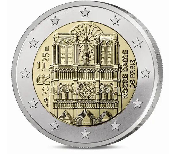 Монета 2 евро 2025 «Собор Парижской Богоматери» Франция